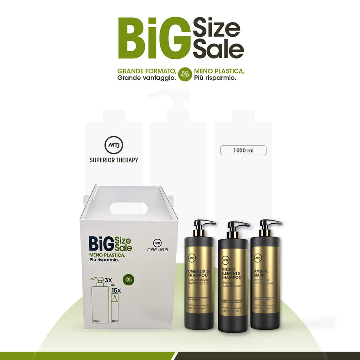 Scopri i formati maxi MTJ: shampoo e mask 1000 ml professionali, perfetti per ogni esigenza haircare. Acquista 3 pezzi uguali e ricevi subito il 10% di sconto. I trattamenti capelli grandi formati MTJ uniscono qualità da salone e convenienza per una routine professionale a lunga durata.